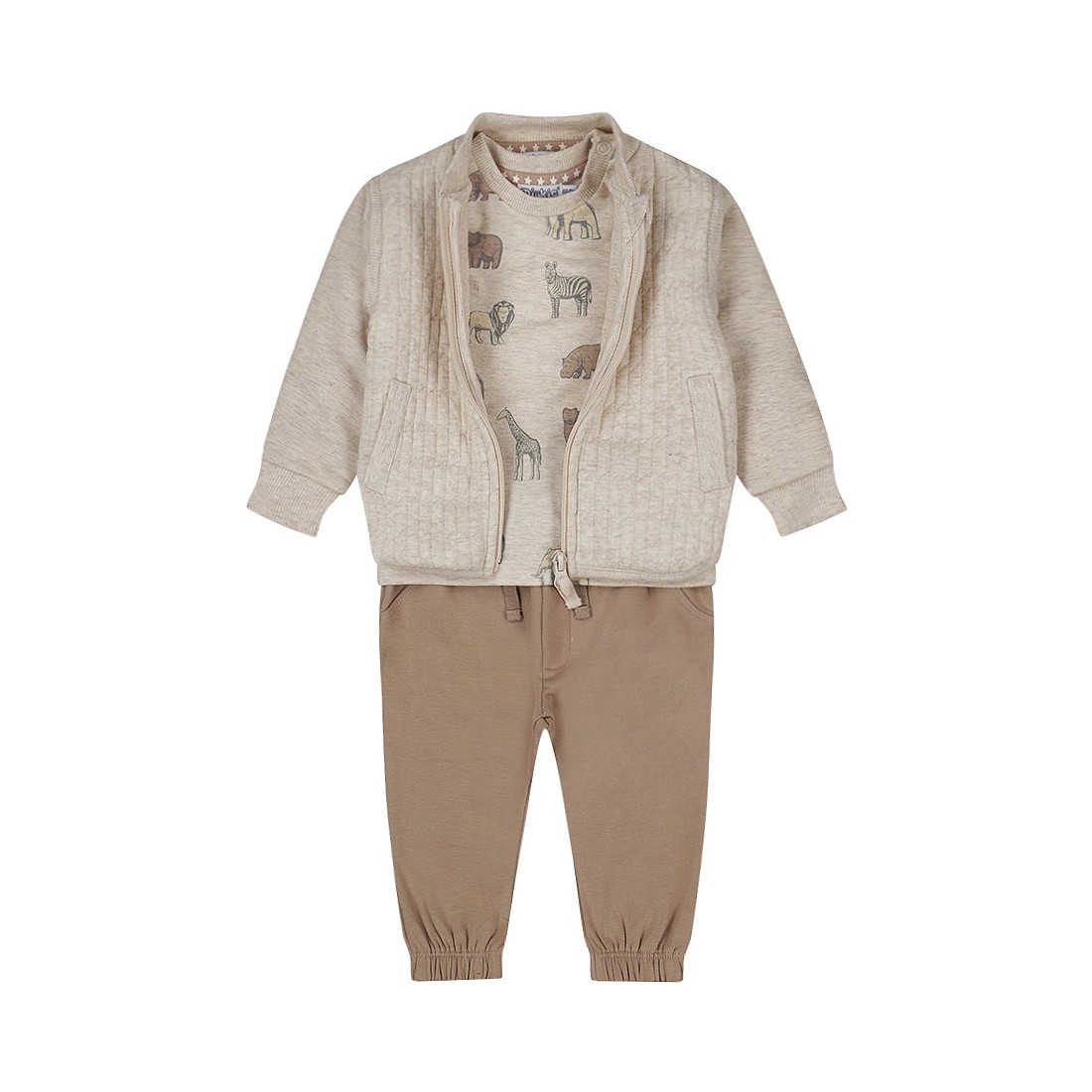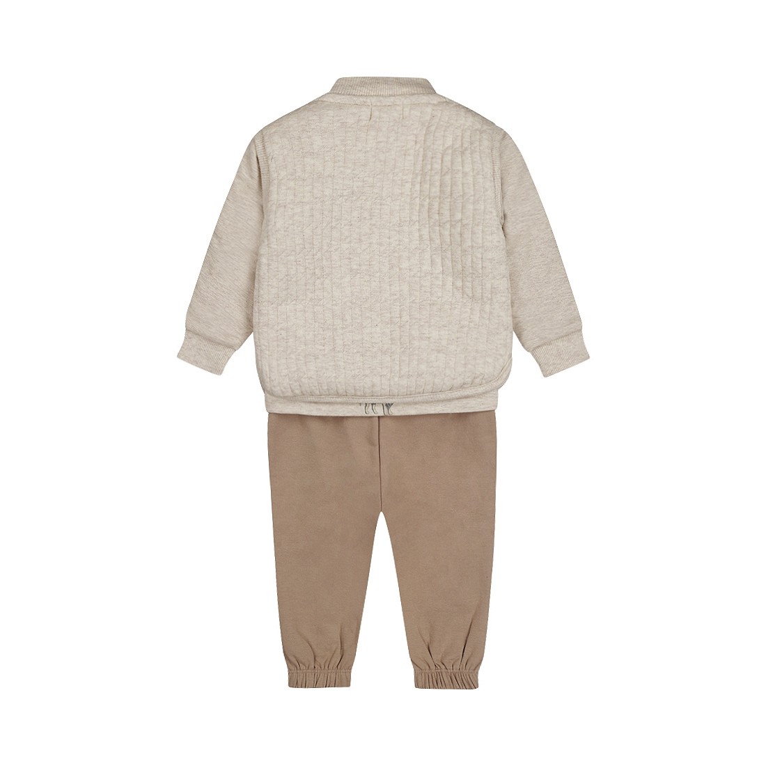 COMPLETO NEONATO TRE PEZZI. CARDIGAN CON BAVERO, PANTALONE CON ELASTICO ALLE CAVIGLIE E T-SHIRT MANICA LUNGA. VARIANTE UNICA