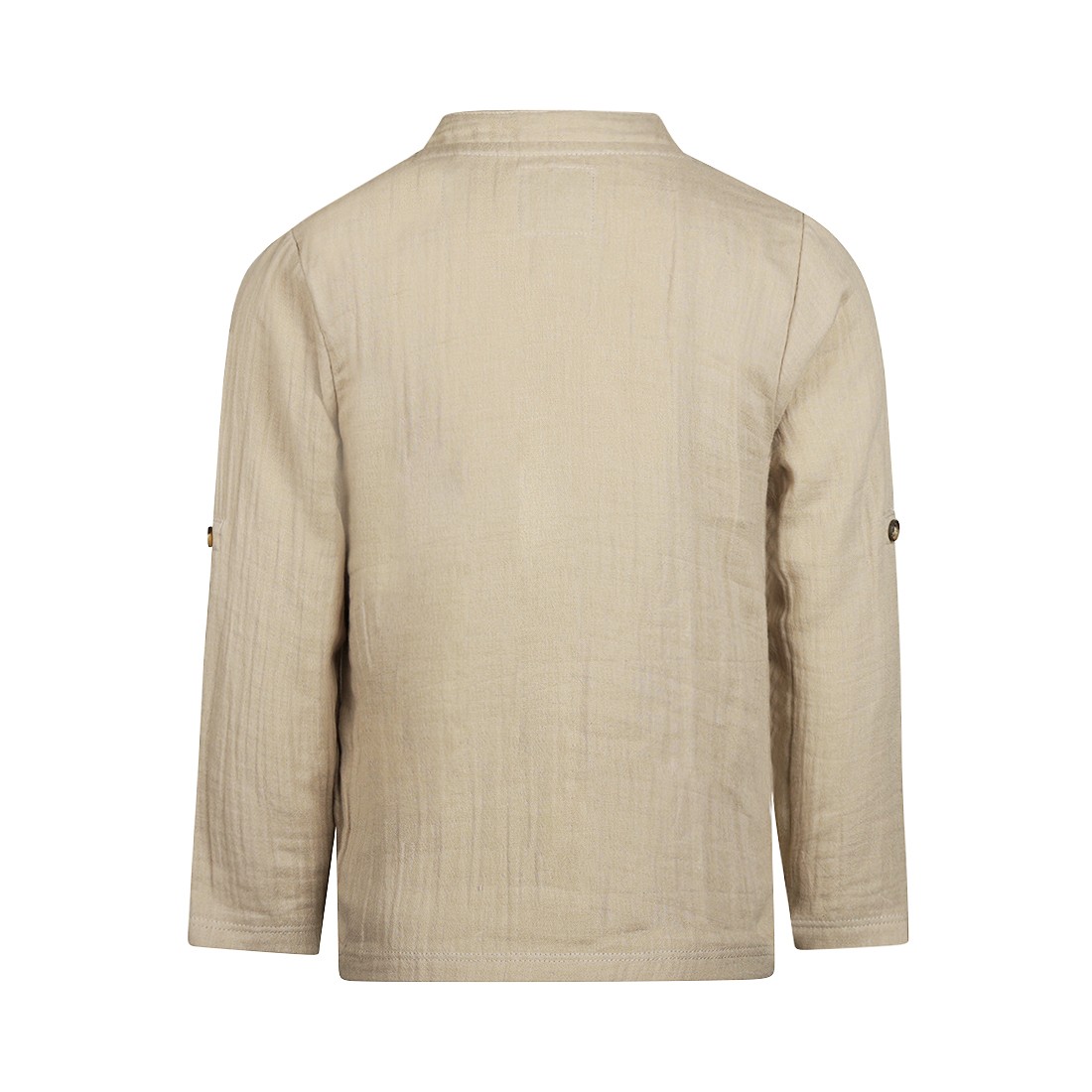 CAMICIA BAMBINO MANICA LUNGA MODELLO SERAFINO CON BOTTONI IN TESSUTO LEGGERO. MANICHE ARROTOLABILI CON SISTEMA ROLL-UP CON COULISSE E BOTTONE.
